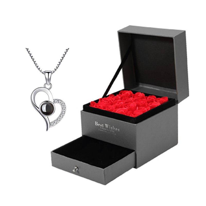 قلادة اسقاطية احبك في مائة لغة معبأة في صندوق هدايا ورد